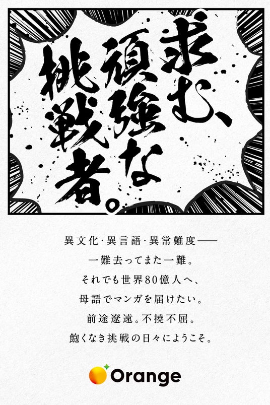 「すべてのマンガを、すべての言語へ」――この果てしない航路をともに進むクルーが、まだまだ足りない。そこでオレンジは、創業以来初となる採用イベントを6月に連続開催。職種やキャリアの枠を越え、挑戦を面白がるあなたを待っている。