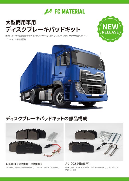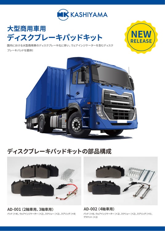 エムケーカシヤマ株式会社が運営するブランド、MK KASHIYAMAおよびFC MATERIALで、大型商用車用ディスクブレーキパッドキットの発売することをお知らせします。