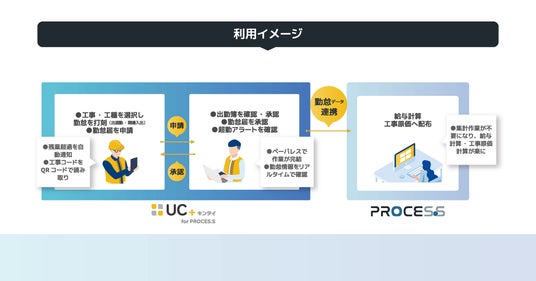 当社はこれまで、UC+(ユクタス)シリーズと、建設業ERPシステム「PROCES.S(プロセス)」が連携するオプションサービスを提供してまいりましたが、この度、2024年4月に法令適用される時間外労働の上限規制の対応へ向けて、建設業特有の工事別の勤怠管理のニーズに応える為、建設業向けクラウド型勤怠管理サービス「UC+(ユクタス)キンタイ for PROCES.S」を開発しました。