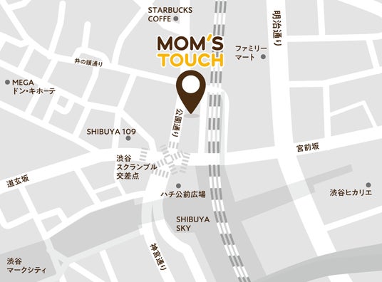 渋谷マムズタッチ 店舗詳細店舗は渋谷駅より徒歩3分、スクランブル交差点を公園通り沿いに進んだところにオープンします。