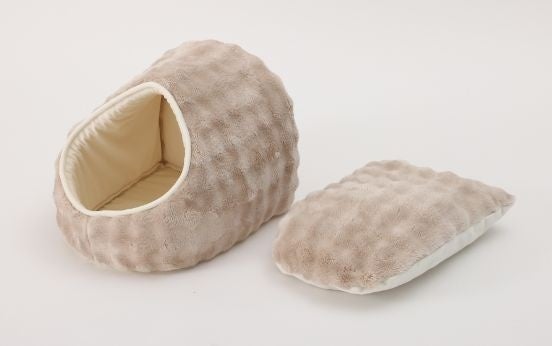 ドーム型は外の音や光をやわらかく遮る形状だから、警戒心の強い子でもリラックスしやすく、ぐっすり眠る姿を見守れます。中にはふんわりとしたクッションを備えており、取り外し可能なので、いつでも清潔に保てるのも嬉しいポイント。