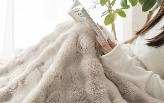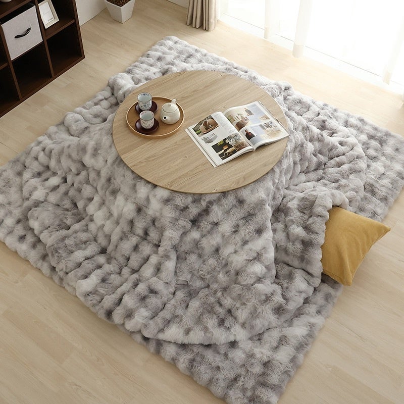 こたつ掛布団 ポコポコ表地には毛足の長い凸凹加工のラビットファータッチ素材を使用し、指先が沈み込むようなふわふわの肌触りを実現しました。高密度の生地が生み出す優しいぬくもりは、一度触れると手放せなくなる心地よさです。
