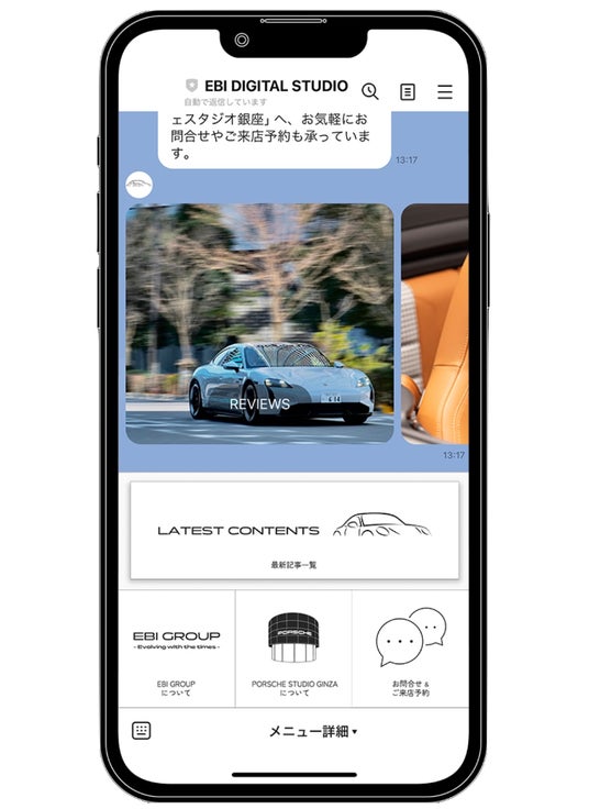 LINE公式アカウント 友だち募集中様々なジャンルのポルシェに関する最新記事や、EBI GROUP 実施のイベント情報などを定期的に配信いたします。