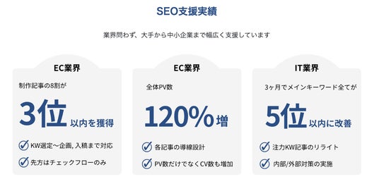広告運用やSEO戦略だけでなく、全体戦略からLP/サイト改善・メディア純広告・MAなど他の施策も取り入れたオールインワンで伴走支援し、お客様の事業成長にコミットします。