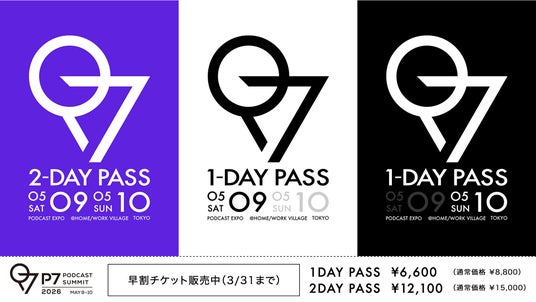 有料エリア「P7 PODCAST SUMMIT」に参加できる早割チケットの販売期間を、好評につき2026年3月31日まで延長します。