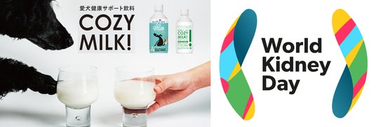 当社はそのような状況を鑑み、愛犬が自ら進んで水分補給をできるよう、愛犬の好きな発酵の香り、甘味を備えた低たんぱくの植物性ペットドリンク、Cozy Milk(以下コージーミルク)を開発、発売しました。ペットドリンクというカテゴリーを定着させて、日常で積極的に水分補給をする習慣を広めて、腎臓ケアを促進させたいと考えています。