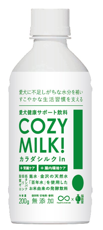 当社は、腎臓ケアを求めるお客様の声にこたえて、より腎臓ケアに特化した「Cozy Milk カラダシルクin」を発売しました。当製品は低カロリー・低タンパク・無脂肪の麹甘酒をベースに、腎臓サポート成分・カラダシルクを加えた愛犬健康サポートドリンクです。