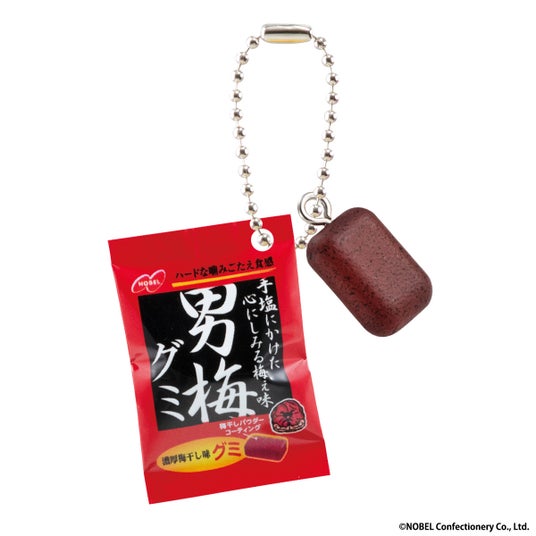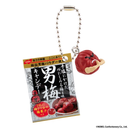 「ノーベル製菓」と「ガシャポン(R)」コラボ第二弾である本商品は、『男梅キャンデー』などのCMソングでおなじみのノーベル製菓の商品を本物そっくりのミニチュアサイズにした全高約3.8cmのチャームです。パッケージは振るとシャカシャカと音が鳴るギミックも楽しめるほか、お菓子または大人気キャラクターも付属するWチャーム仕様となっています。