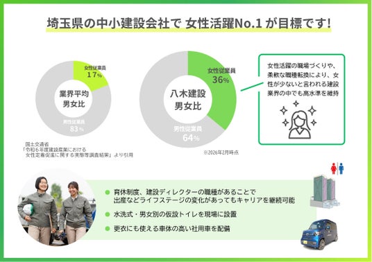 2025年3月に創業70周年を迎えた八木建設株式会社(本社:埼玉県本庄市)は、男女共同参画の推進に顕著な功績があった事業所として、令和7年度「埼玉県荻野吟子賞」の「いきいき職場部門賞」を受賞いたしました。