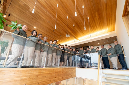 社員25名、年齢や性別を問わず働く社員が集う木造社屋での集合写真