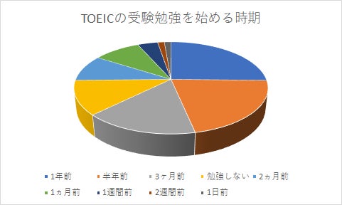 「TOEICの受験勉強を始める時期に1ヶ月くらい前であれば緊張感があってだらだら勉強しなくて済むから。TOEICは何度か受けましたが、英語の勉強も大切ですが、時間配分も肝になるため、どの問題にどのくらいの時間をかけるかも対策として必要だと思います。」(20代・男性)