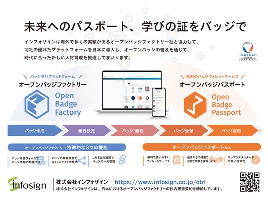 インフォザインは2001年に設立され、2023年12月、ヨーロッパを中心に12年間に渡りオープンバッジ事業を展開するオープンバッジファクトリー社と、同社の製品「オープンバッジファクトリー」の日本における独占販売契約を締結しました。