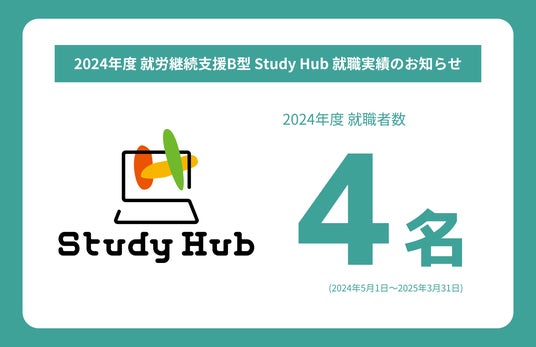 日本介護事業株式会社が都内に2拠点展開する、就労継続支援B型「Study Hub」にて、開設初年度(2024年度)に就職者4名の輩出実績を発表しました。