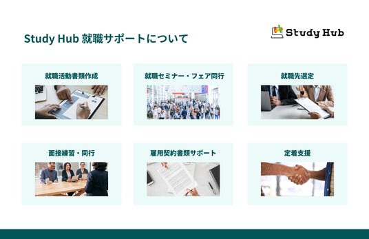 Study Hubでは、就職実績を有するスタッフが専門的にサポートを行います。また、就職活動におけるサポートを徹底的に支援いたします。Study Hubはロハスグループが運営しており、グループ本部人事部との連携による面接練習や、書類の添削などを専門的に行うことが可能です。企業目線での就職サポートを行うことで、安心で自信を持って就職活動に挑むことができます。