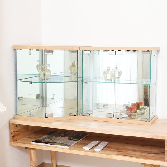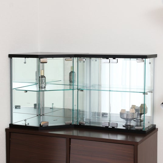 スペースを活用したコーナー型卓上ガラスコレクションケース