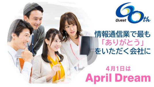 株式会社クエスト(本社:東京都港区、代表取締役会長兼社長執行役員:清澤一郎)は、2025年の創業60年の節目に際し、情報通信業で最も多くの「ありがとう」をいただき、社内でも感謝・称賛を贈り合う会社になることを宣言します。