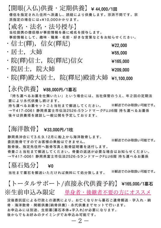 先日の料金大幅改定に加え、葬儀関連企業様にも扱っていただき易くするためにネットショップページを開設しました。