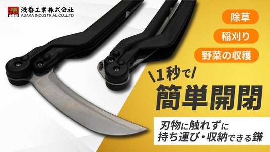日本製ショベル・スコップのシェアNO.1の浅香工業株式会社(本社:大阪府堺市堺区、代表:岡田 実)は、昨年クラウドファンディングサービス「Makuake」にて、「刃物に触れずに持ち運び・収納できる鎌」のプロジェクトを実施し、目標金額の2200%を達成。ご好評に付き一般販売が決定しました。