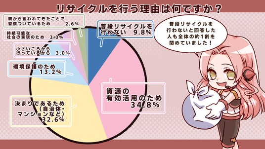 その結果、「資源の有効活用のため」が最も多く約35%、次点で「決まりであるため(自治体・マンションなど)」が約33%となりました!