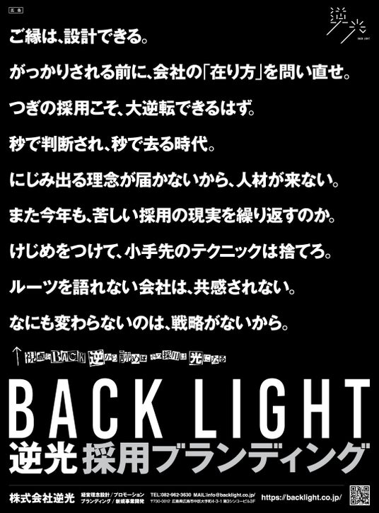 #採用ブランディング #五月病 #構造設計 #在り方設計 #BeingDesign #逆光 #広島 #新聞広告 #採用戦略 #中小企業経営