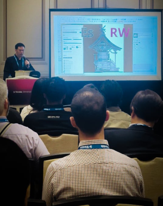 「伝統と技術の架け橋」をテーマとした今回の講演では、点群編集ソフト「Real works」や3DCADソフト「SketchUp」を普段どのように活用しているかについての解説を初め、3Dスキャナーと両ソフトの可能性についてのより実践的な使い方が図解と共に詳しく紹介され、吉匠による日本の木工技術と「Trimble」の 3Dスキャン技術の融合についての取り組みが世界に向けて発信されました。