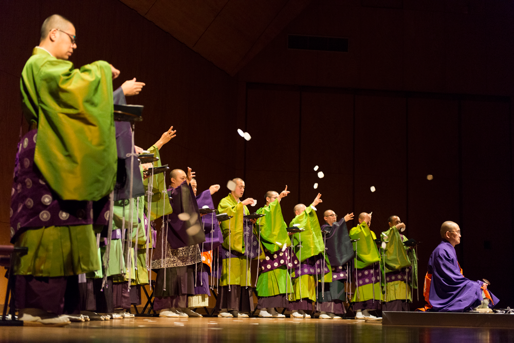 聲明の二大流派である真言宗と天台宗の僧侶たちが結集した「声明の会・千年の聲」が出演。僧侶が唱える祈りがコンサートホールを包みます