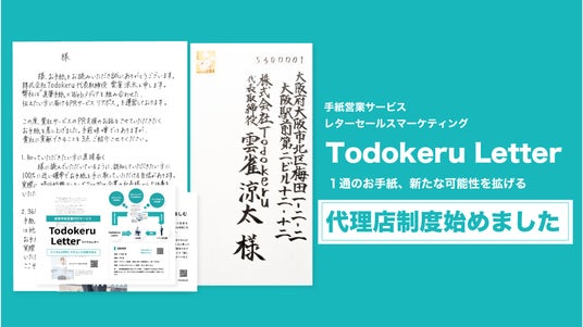 圧倒的に直筆に振り切った直筆手紙営業代行サービス「トドケルレター」を展開。書道家による封筒・便箋、文章作成、企画戦略まで一貫して設計した戦略型の手紙営業を提供しています。
