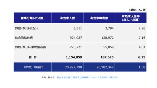 ※観光庁の統計によると、宿泊業界の有効求人倍率は6.15倍と非常に高い水準で、多くの職種で人手不足が続いています