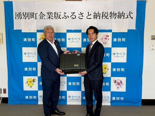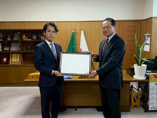 左:湧別町長 刈田 智之氏、右:有限会社アクアテック 代表取締役 大和田 健斗