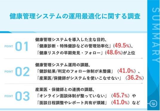 ~「健診・特殊健診の効率化」「健康リスクの早期発見」を目的に導入も、41.0%がフォロー体制の未整備に悩む実態~