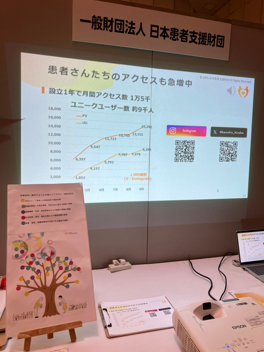 一般財団法人 日本患者支援財団(所在地:東京都千代田区、 代表理事:デービット・リーブレック、以下「当財団」)は、2025年11月28日(金)・29日(土)の2日間にわたり滋賀県大津市で開催された、難病支援学術コンソーシアムの展示会出展をしました。イベントには1,100名を超える参加者が集まり、そこで得られた医療従事者や患者さんの悩みや期待を今後の取り組みに生かしていきたいと考えています。