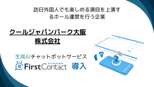 生成AIを活用したSaaSサービスの提供する株式会社バイタリフィ(東京都渋谷区、代表取締役:板羽晃司)と、訪日外国人でも楽しめる演目を上演するホール運営を行う企業クールジャパンパーク大阪株式会社(大阪市中央区、代表取締役:片岡秀介)へ生成AIチャットボットサービス「FirstContact(ファーストコンタクト)」を導入したことをお知らせいたします。