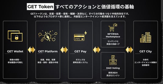 GETトークンは、映画・音楽・ゲーム・ライブ・スポーツなど多様なジャンルのIP(知的財産)とファンをつなぐための革新的なWeb3トークンであり、世界規模でのユーティリティ展開を目指すプロジェクトの中核を担う存在です。