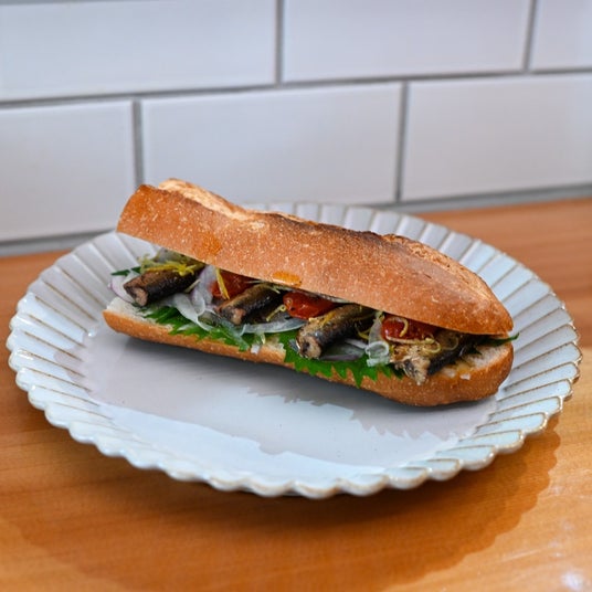 極上オリーブオイルとスモークサーディンのバゲット