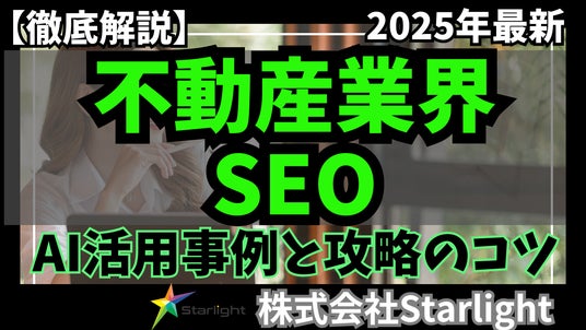 株式会社Starlight(本社:東京都豊島区、代表取締役社長:黒田 真乃介、以下「当社」)は、不動産業界の皆様を対象に「2025年版 不動産業界向けAI×SEOトレンドレポート」を公開いたしました。本レポートは、不動産業界がSEOを活用して集客を強化するための最新事例や成功パターン、そして成果に直結する戦略的なAI×SEOノウハウを一冊に集約しています。