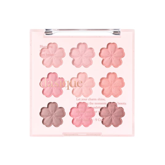 - やわらかく可憐なピンクトーンを基調とした9色構成で、ナチュラルな血色感メイクから、深みのある上品なアイメイクまで幅広く演出します。