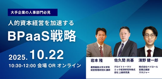 株式会社ペイロール(本社:東京都江東区、代表取締役社長:湯浅哲哉、以下:ペイロール)は、2025年10月22日(水)にハイブリッドセミナー「人的資本経営を加速するBPaaS戦略」(参加費無料)を開催いたします。