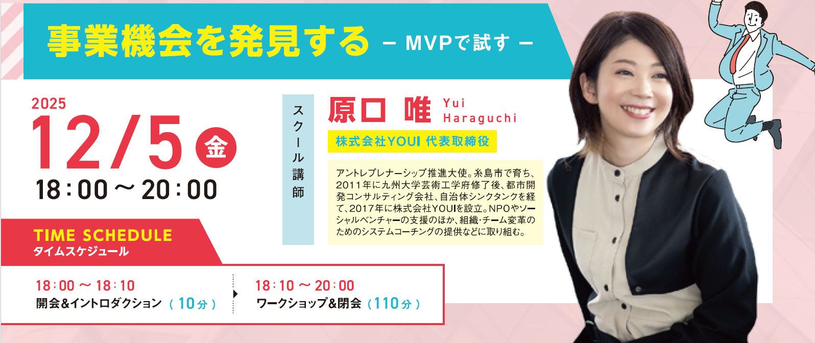 1.「事業機会を発見する―MVPで試す―」■日時:2025年12月5日(金)18時~20時