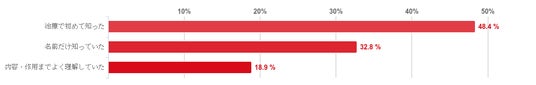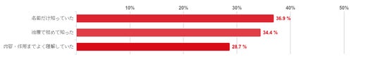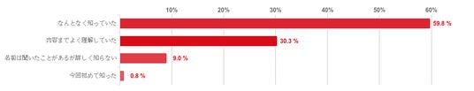 「なんとなく知っていた」と回答した人が59.8%と約6割で圧倒的に多かった。続いて「内容までよく理解していた」と回答した人は30.3%となった。反対に、「名前は聞いたことがあるが詳しく知らない」や「今回初めて知った」と回答した人はほとんどいなかった。