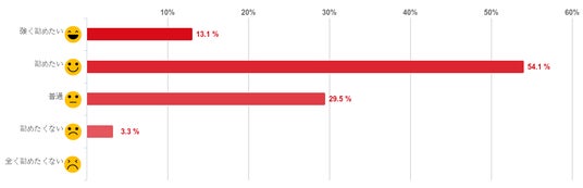 「勧めたい」と回答した人が54.1%で過半数となり最も多く、次いで「普通」との回答が29.5%だった。反対に、「勧めたくない」と回答した人は3.3%と僅かで、「全く勧めたくない」と回答した人はひとりもおらず、回答者の7割近くが、利用したオンライン診療を家族や友人に勧めたいと思っていることがわかった。