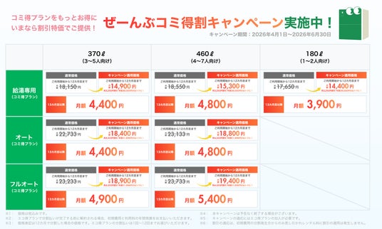 月々3,900円からエコキュートのレンタルができる「エコレンタル」に全部コミコミの「コミ得プラン」が新登場!さらに期間限定で「ぜーんぶコミ特割キャンペーン」を同時開催!