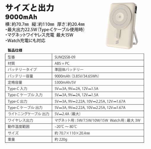 最大出力22.5Wの充電が可能で、ケーブル一体型設計により持ち運びや使用が格段に便利です。