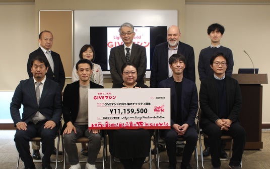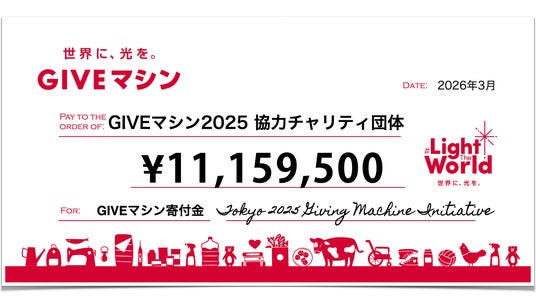 GIVEマシン実行委員会は、2025年冬に東京・大手町で開催された体験型チャリティプロジェクト「GIVEマシン2025」で集まった寄付金 11,159,500円 を、国内外5つの慈善団体へ贈呈する寄付金贈呈式を 2026年3月18日(水)15:00~16:00 に 東京神殿別館 で開催しました。