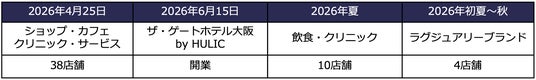 2026年夏頃に、5階「RESTAURANT」、6階「CLINIC」の10店舗がオープンする他、2026年6月15日(月)には「ザ・ゲートホテル大阪 by HULIC」も開業。初夏~秋頃には1~3階のラグジュアリーブランド4店舗が順次オープンいたします。『クオーツ心斎橋』は、従来のラグジュアリーの枠を超えた新たな価値提案を通じて、訪れる人々の感性を刺激する施設として進化し、心斎橋エリアの更なる活性化に貢献してまいります。