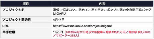 応援購入総額は約341万円を突破し、目標金額10万円の約3,416%を達成(4月22日時点/サポーター233人)。Makuakeページには「キャンプで服を持っていくのに使おうと思っています」「衣替えに使いたい」など、旅行以外の用途でも共感の声が集まっている。