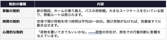荷物が多い旅行には、実は多くの「見えない制約」がかかっています。