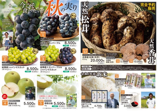 このほか、希少な広島県産の黒ブドウ「総領産ナガノパープル」、帝釈峡にほど近い果樹園で栽培した「帝釈の梨」、冷涼な気候が育んだ幻の高野りんごや新米など、生産者のこだわりが詰まった商品をご用意。新商品では道の駅たかの、食彩館しょうばらゆめさくら朝どり市、東城きんさい市が厳選した秋野菜や果物、特産品など、店長おすすめの旬の食材をお届けします。