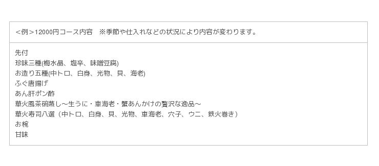 ・12000円以上のコースを2日前までのご予約で、1組5名様から承ります。(定員8名様)