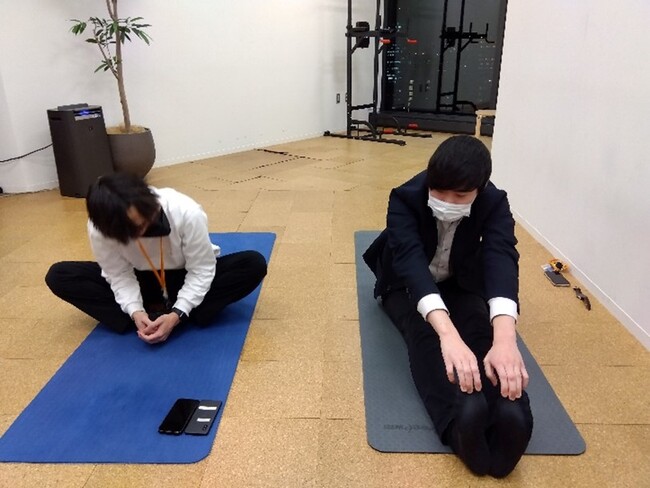 場所は会議室に囚われず、リラックスできる空間だからこそ出来る話もあると思っています。ストレッチルームを利用した1on1は仕事・プライベート両方の話をしながら、運動不足の体も健康になるという心身ともにリフレッシュできる時間です。弊社はリモートワークも併用できますが、ストレッチをしながらの1on1はとても楽しみな時間で、毎週木曜日は、この時間があるから出社しているといっても過言ではありません!
