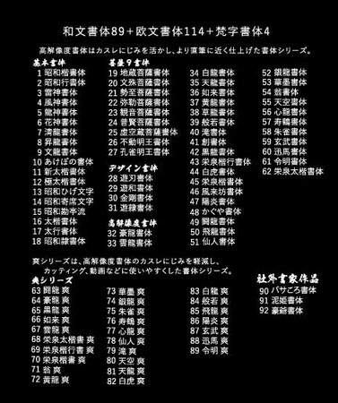 以前の全書体セットからフォント数を増やし、このセットだけでさまざまな場面の文字を彩ることができるさつま町自慢の逸品となっております!